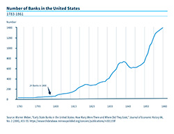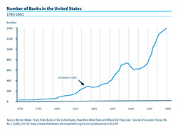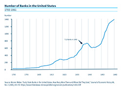 The Free Banking Era begins in 1837. Apart from the First and Second Banks of the United States, bank regulation since the country's founding had been left to the states and banks were chartered by state legislatures. Beginning in 1837 with Michigan, however, many states adopted so-called free banking laws. Eventually 18 states adopted such laws, which had few entry requirements. Free banks operated alongside chartered banks but were more likely to be in less-populated rural areas. Free banking allowed anyone with a certain minimum amount of capital to start a bank, which could issue bank notes provided that the bank deposited government bonds (typically those issued by the state) with the state banking authority as collateral. In return, the bank would usually be permitted to issue bank notes of a value equal to the deposited bonds. One consequence of this system was that a bond price decline would depreciate the values of bank assets and lead to bank runs and failures. Bank notes were a promise by the issuing bank to pay a specified amount of specie on demand. Thousands of different types of bank notes circulated during this period and were exchanged at various discount rates according to the perceived soundness of their issuers and the distance from the issuing bank. Free banking laws protected noteholders. When a bank failed to redeem its notes, the state banking authority would close the bank and sell its deposited collateral to repay all noteholders. The stability of the free banking system varied in different states. New York was considered a well-functioning free banking system, while Midwest free banking states experienced severe banking unrest. The free banking era ended with the passage of the National Bank Acts during the Civil War.