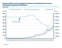 There are approximately 13,450 FDIC-insured institutions with estimated insured deposits of about $150 billion.
